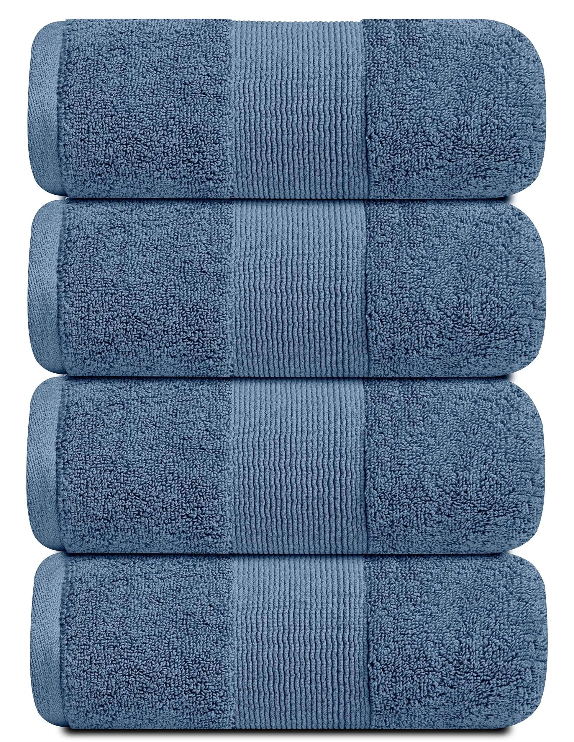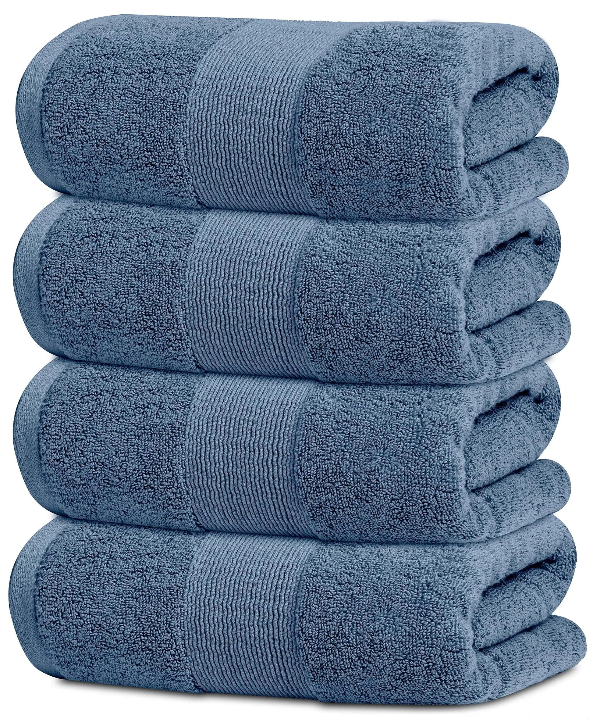 RESORT COLLECTION - 4-Piece Bath Towels are generously Sized at 28x55 inches, plenty of room for comfortable lounging after a refreshing shower or relaxing soak. Each towel is spun from fluffy 700 GSM long staple 100% combed cotton - soft, durable, quick-dry, and wonderfully absorbent. It is more absorbent then any Turkish Cotton Towel.